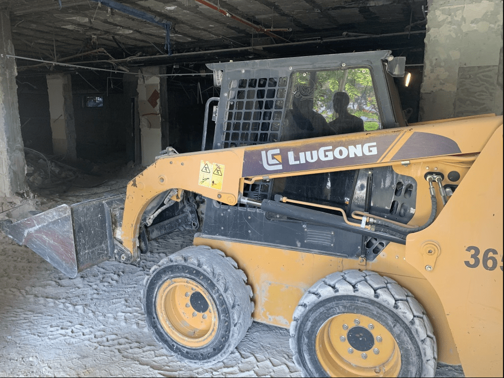 The architectural team meeting in the basement of the New World Center, after the renovation crew has began working.